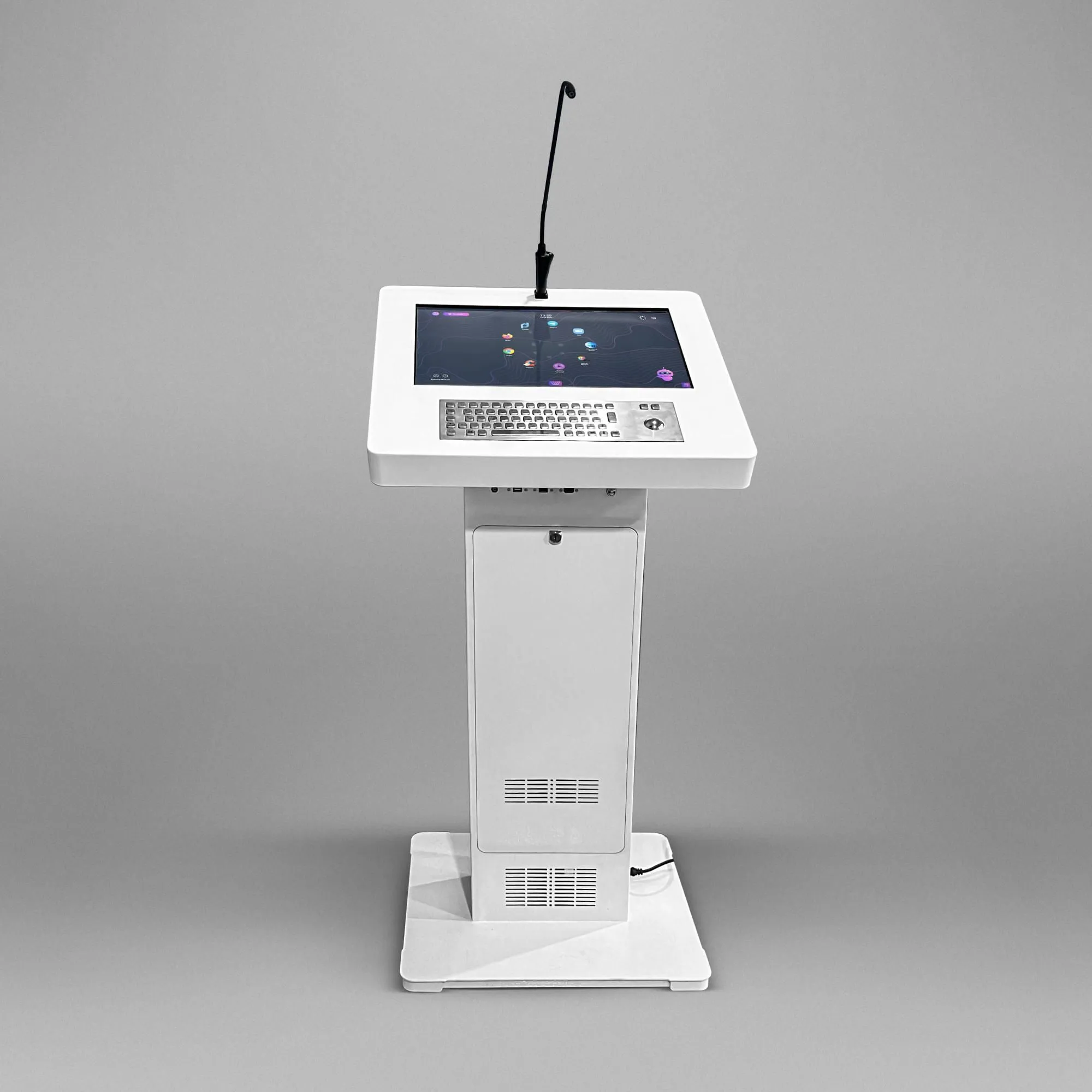 Одна из ведущих моделей в нашей линейке интерактивных трибун. Яркий сенсорный дисплей, стильный стальной корпус, микрофон и набор всех необходимых разъемов для подключения техники – вот что делает интерактивную трибуну Cicero оптимальным решением для вузов, лекториев и конференц-залов.Опционально: