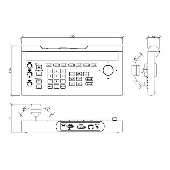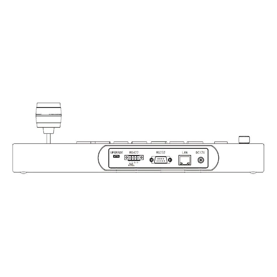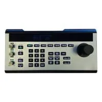Панель управления PTZ-камерами по IP-сетям и по интерфейсам RS232/422/485, оснащенная трехосевым джойстиком, функциональными клавишами, а также поворотными регуляторами и клавишами непосредственных регулировок параметров камер.