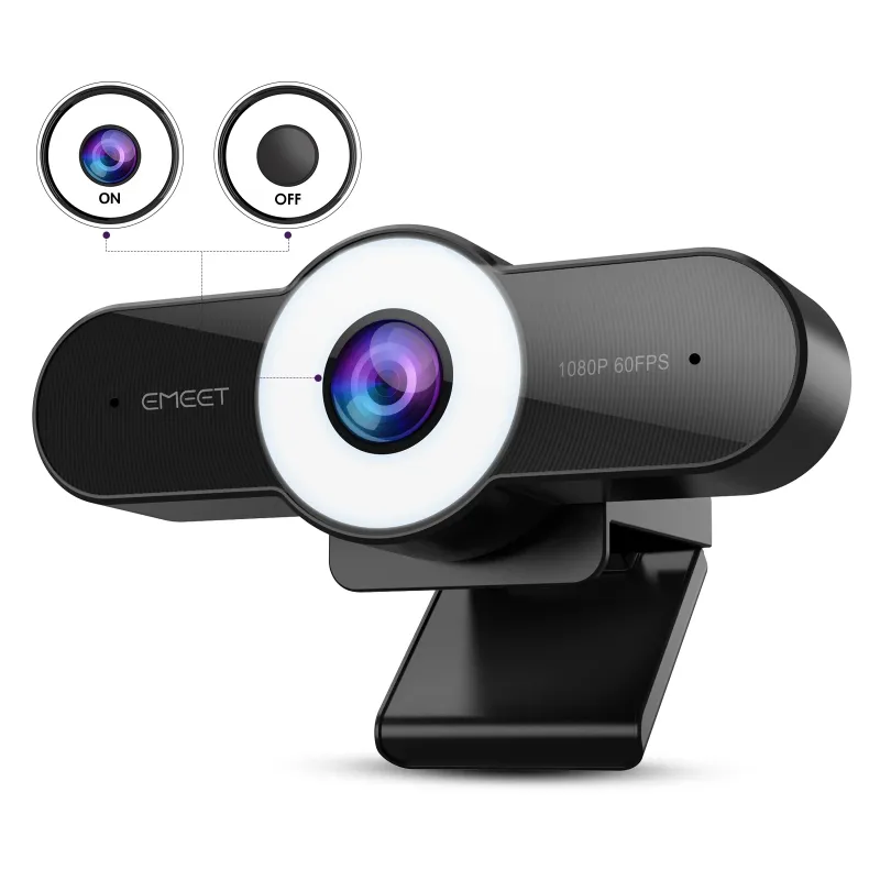 Встроенная в веб-камеру кольцевая лампа позволит осветить вас даже при выключенном внешнем свете комнаты. Лампа имеет 3 уровня регулировки яркости.