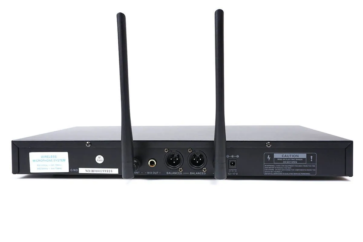 Микрофонная радиосистема с двумя петличными микрофонами. Передача звука с радиомикрофона осуществляется посредством радиопередатчика, поэтому радиомикрофоны не нуждаются в кабеле для подключения к блоку управления. Петличный радиомикрофон, или же просто петличка, отлично подойдет ведущему мероприятия, он незаметен на одежде и оставляет руки свободными.