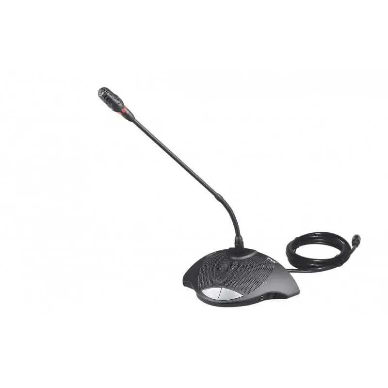Функция индикации состояния и автоматического отслеживания подключения видеокамеры (работает только при подключении к блоку управления BKR BLS-U450M). Конструкция нижней части корпуса цельнометаллическая, гибкая стойка микрофона – съемная. LED-индикатор на передней части микрофона отображает подключен ли микрофон Вкл/ выкл. Индикатор красного цвета показывает рабочее состояние микрофона. Встроенный Hi-Fi динамик, позволяет проигрывать фоновую музыку. Микрофон питается от управляющего пульта, рабочее напряжение – 9 В. Пульт председателя оборудован кнопкой управления приоритетностью микрофонов.Можно приостановить работу пульта делегата, при этом пульты председателя продолжат работу и не будут затронут. Два выходных разъема для стереозвука 3.5 мм. Разъемы можно использовать, для подключения гарнитуры вместо микрофона и динамика. Поддерживается и регулировка громкости. Гибкая стойка микрофона для конференций настраивается, принимая любое необходимое положение. Пульты подключаются к блоку в виде цепочки, один через другой, что упрощает установку и обслуживание системы. Микрофонный пульт поставляется с 2.1-метровым, 8-жильным кабелем для удобного подключения микрофона.