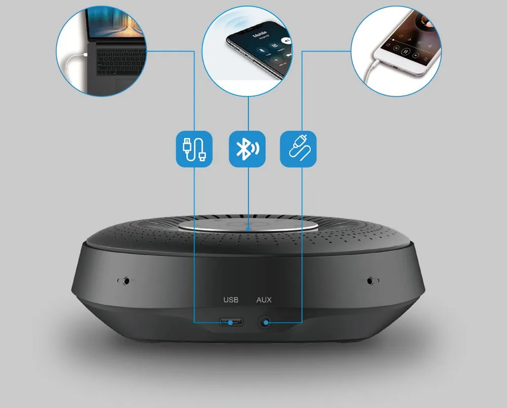 CleverMic SP11 BT — это небольшой спикерфон с массивом из 4-х микрофонов для захвата звука на 360° и 2-мя динамиками мощностью 3 Вт. Может работать по беспроводной технологии, что делает его мобильным и удобным для использования в небольших переговорных комнатах или аквариумах.