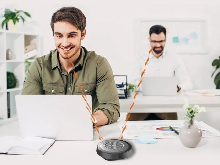 Технология AGC (автоматическая регулировка усиления) обеспечивает ровность звучания микрофона, за счет выравнивания амплитуды громкости входного и выходного сигнала, чтобы добиться высокой детализации речи, даже если собеседник говорит тихо или находится на удалении от спикерфона.