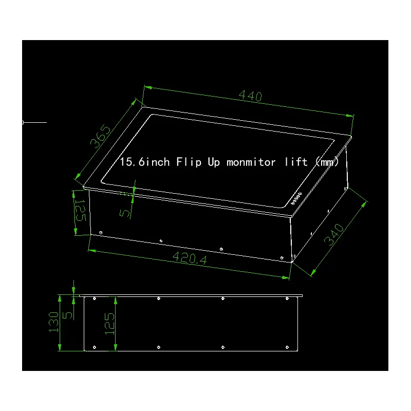 Моторизованный раскладной ЖК-монитор с клавиатурой. Диагональ экрана 15,6". Разрешение 1920×1080. Корпус выполнен из анодированного алюминия. Кнопки управления. Встроенная клавиатура, ниша для беспроводной мыши.