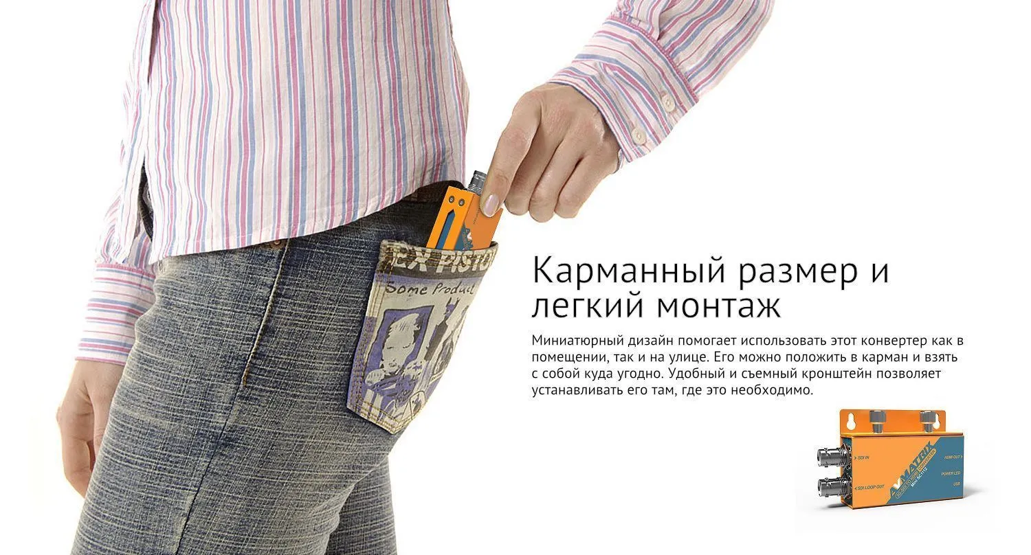 Миниатюрный конвертер HDMI в SDI. Благодаря разъему питания micro USB и удобному съемному монтажному кронштейну является лучшим выбором для использования в помещении и на открытом воздухе.